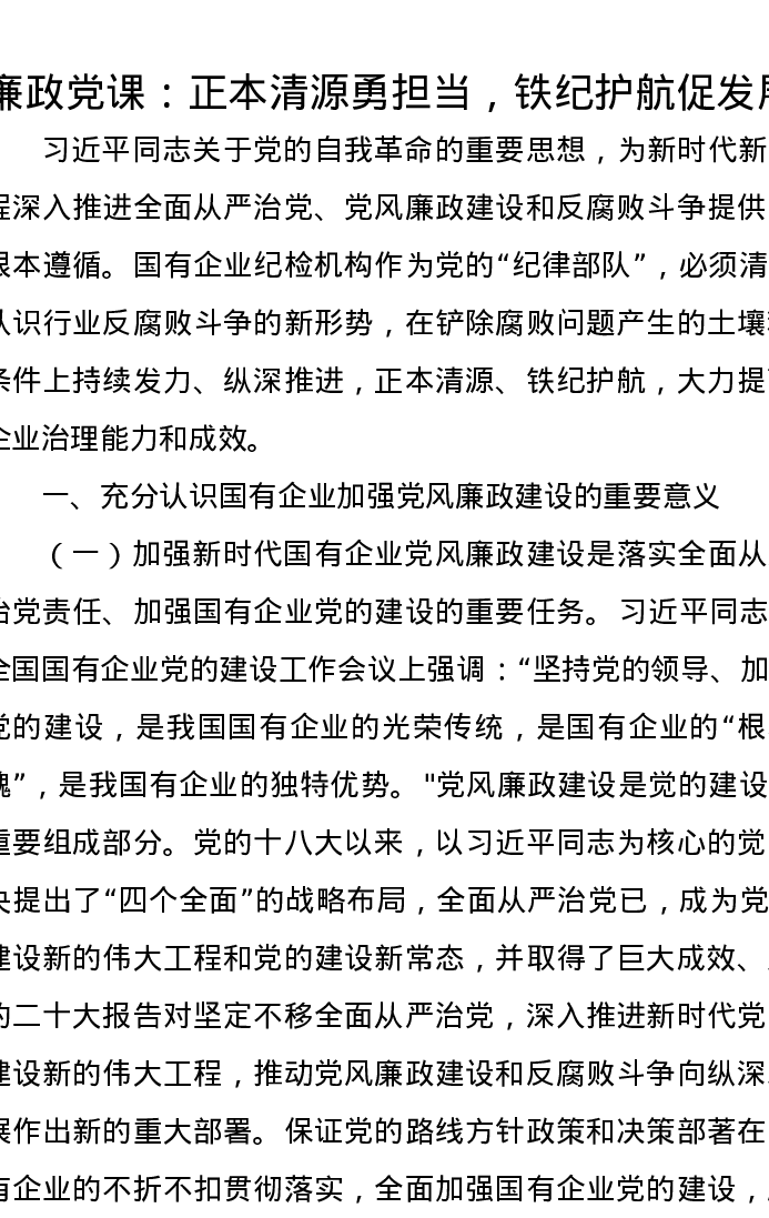 廉政党课:正本清源勇担当,铁纪护航促发展