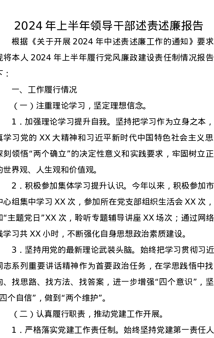 2024年上半年领导干部述责述廉报告