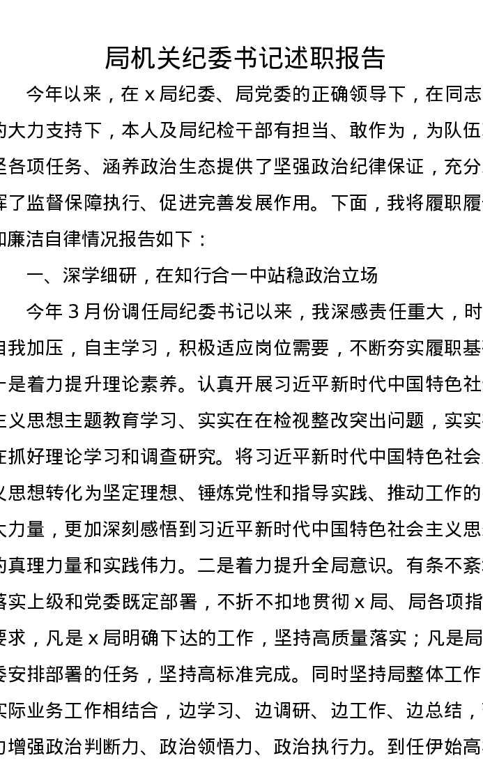 局机关纪委书记述职报告