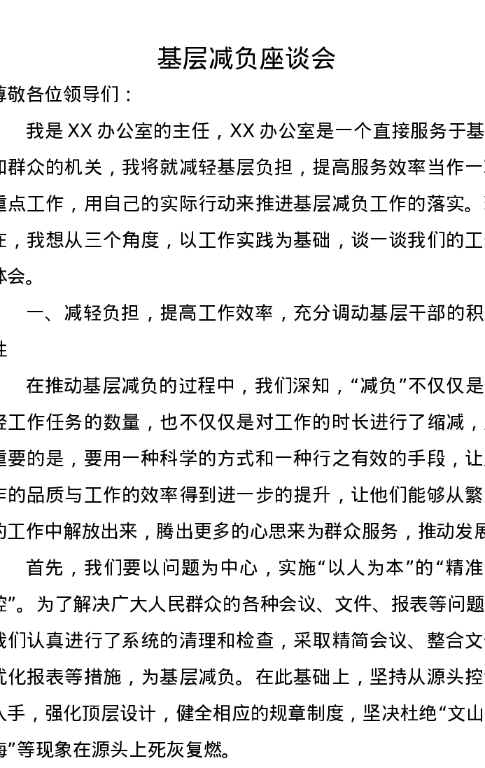 基层减负座谈会发言