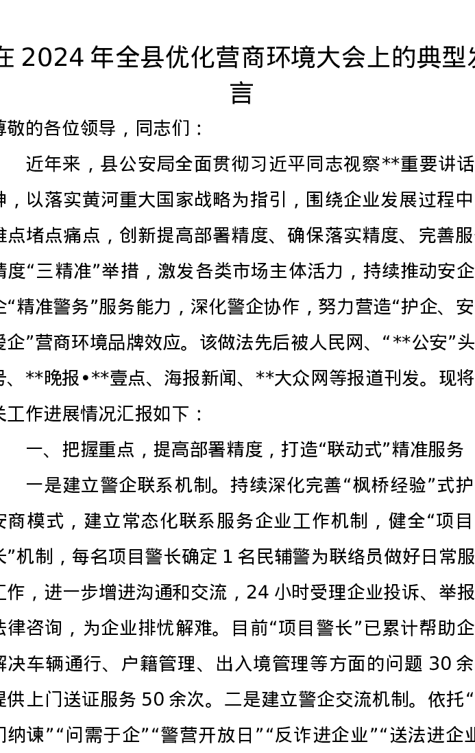 在2024年全县优化营商环境大会上的典型发言