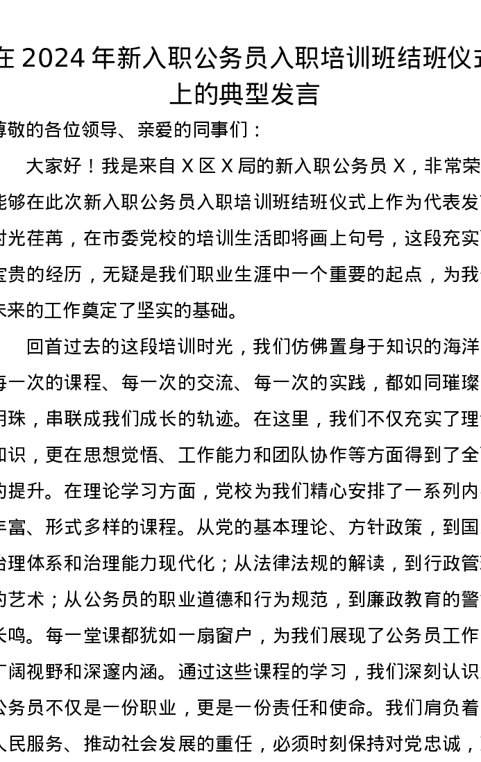 在2024年新入职公务员入职培训班结班仪式上的典型发言