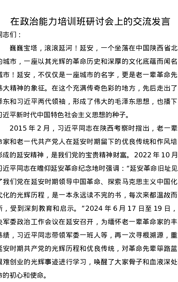 在政治能力培训班研讨会上的交流发言