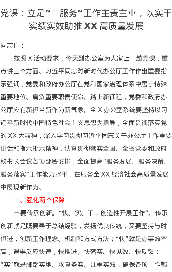 党课讲稿:立足“三服务”工作主责主业,以实干实绩实效助推XX高质量发展