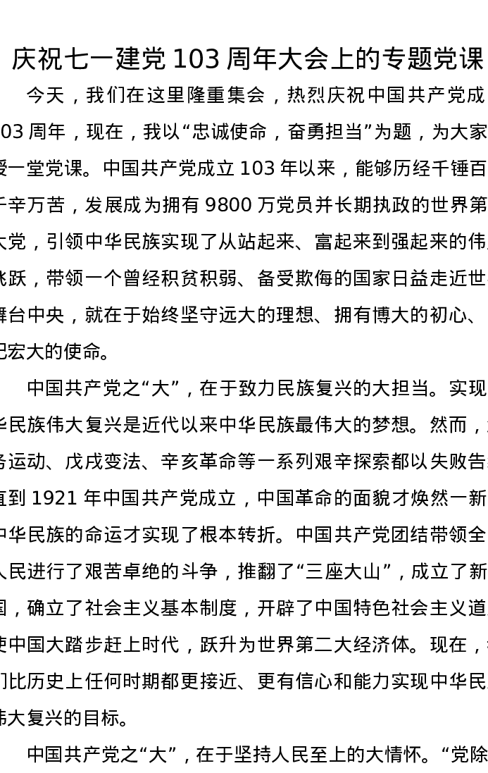 庆祝七一建党103周年大会上的专题党课