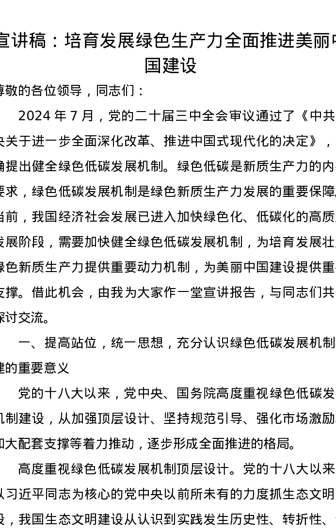 宣讲稿:培育发展绿色生产力全面推进美丽中国建设