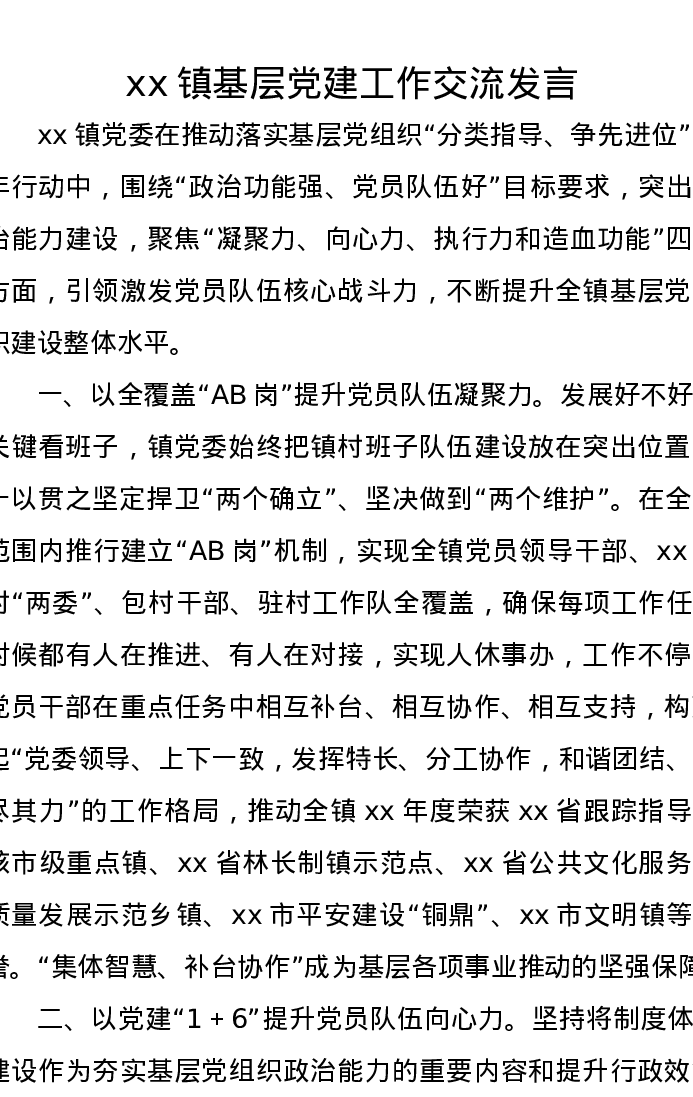 xx镇基层党建工作交流发言