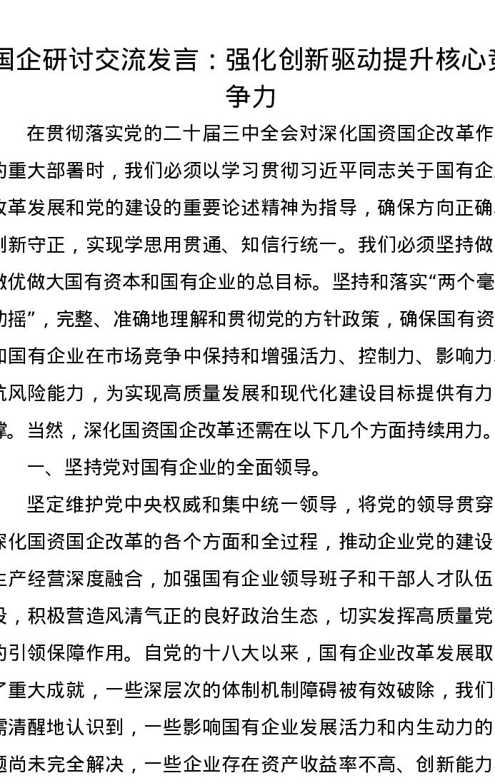 国企研讨交流发言:强化创新驱动提升核心竞争力