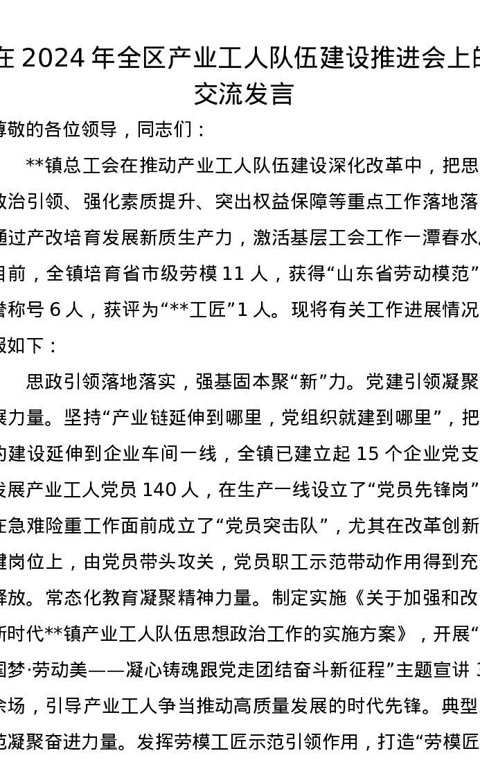 在2024年全区产业工人队伍建设推进会上的交流发言