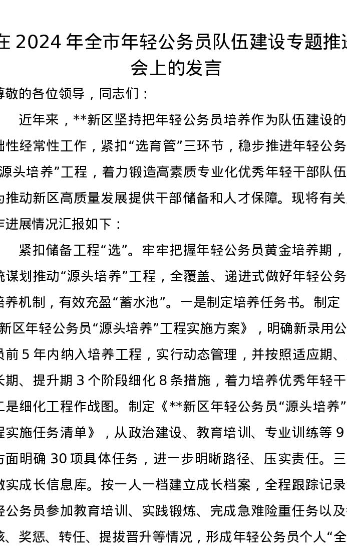 在2024年全市年轻公务员队伍建设专题推进会上的发言