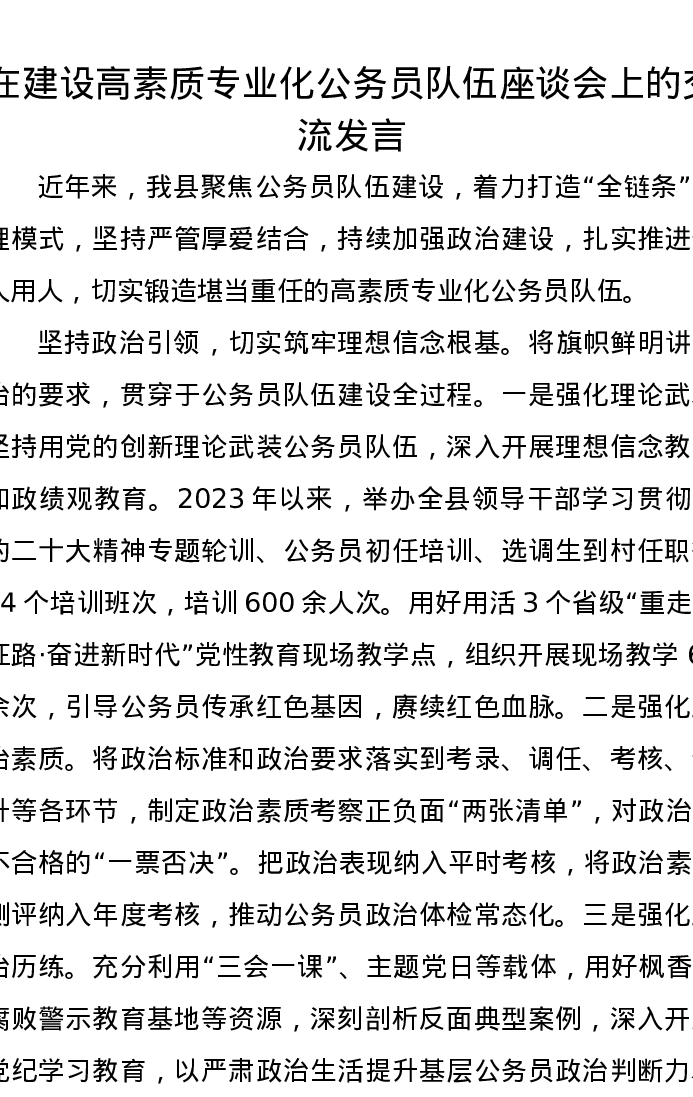 在建设高素质专业化公务员队伍座谈会上的交流发言