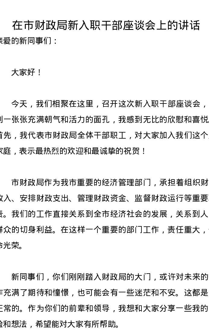 在市财政局新入职干部座谈会上的讲话