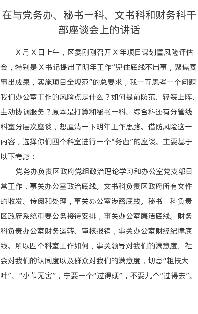 在与党务办、秘书一科、文书科和财务科干部座谈会上的讲话