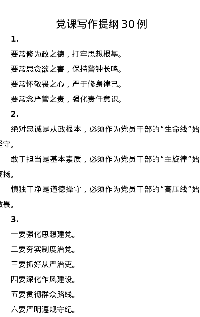 党课写作提纲30例