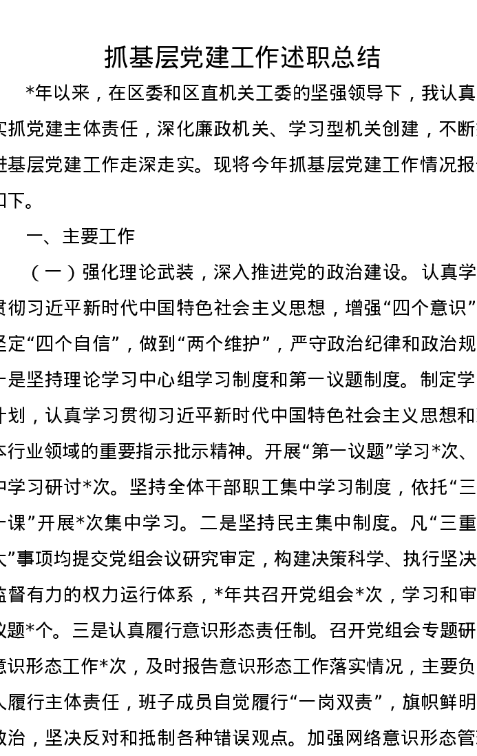 抓基层党建工作述职总结