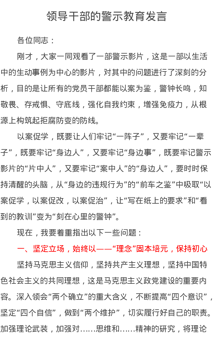 领导干部的警示教育发言