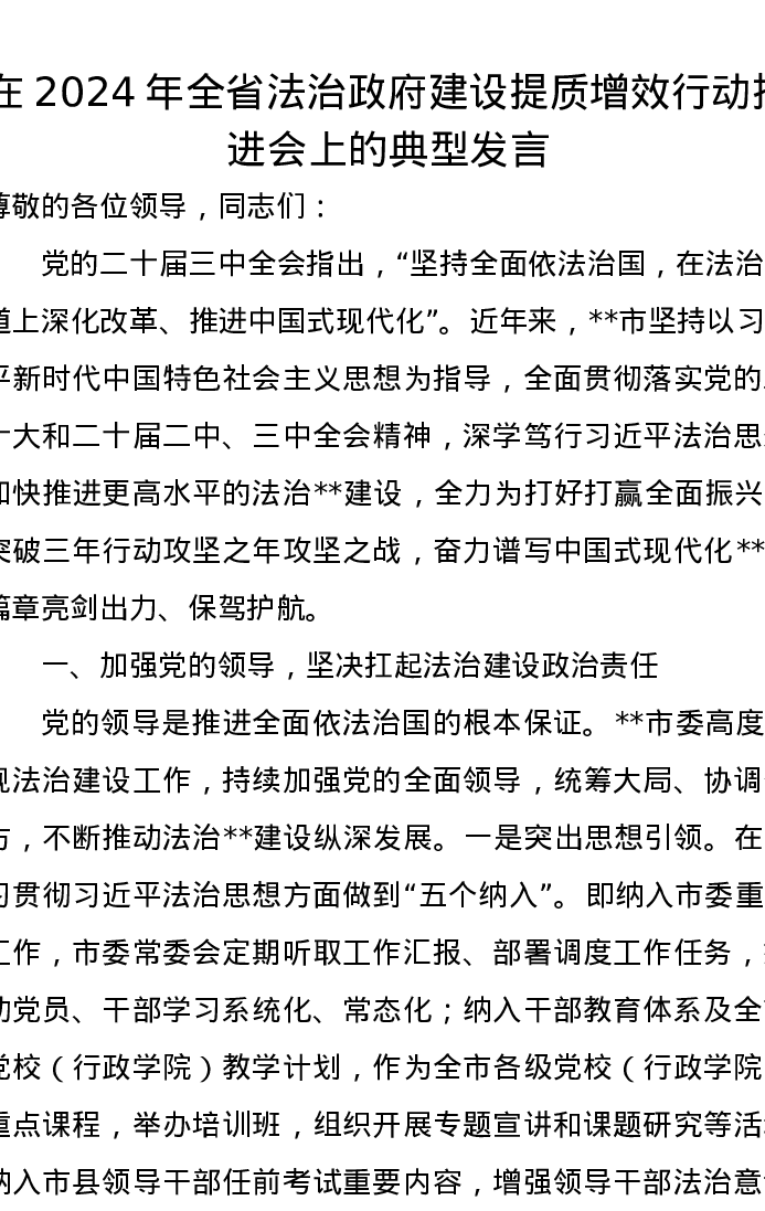 在2024年全省法治政府建设提质增效行动推进会上的典型发言