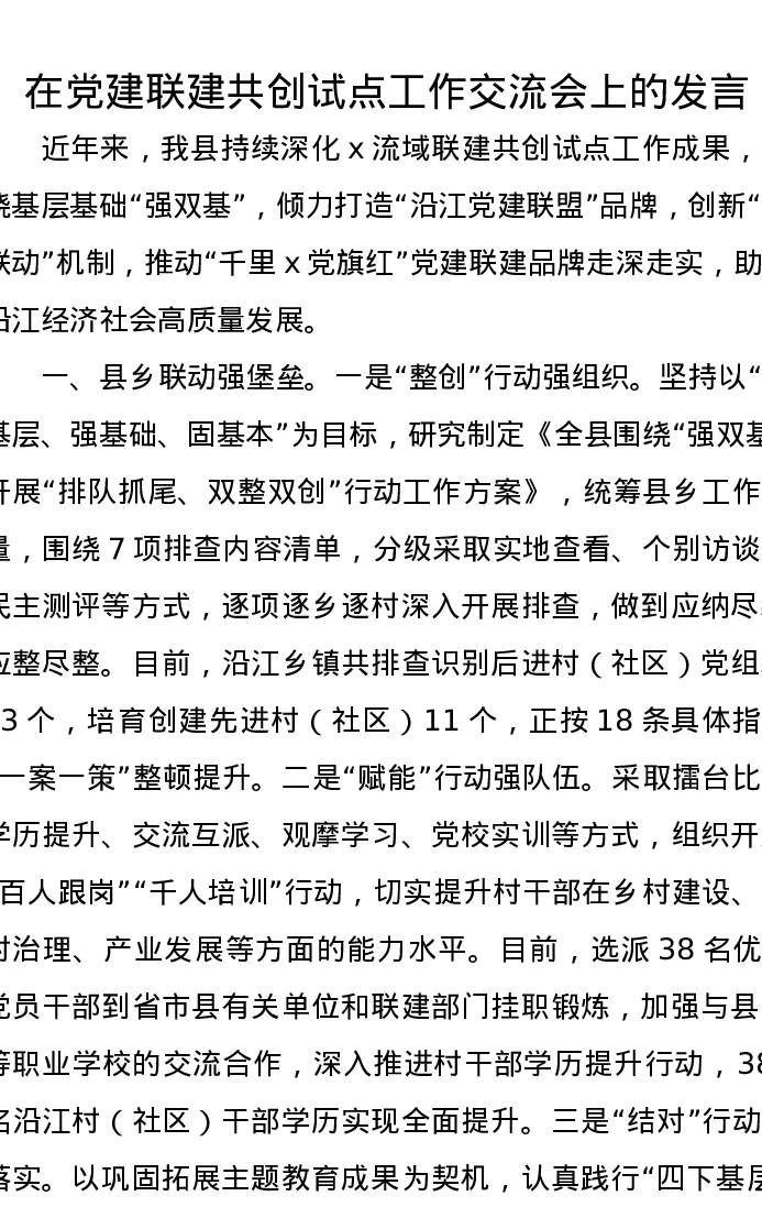 在党建联建共创试点工作交流会上的发言
