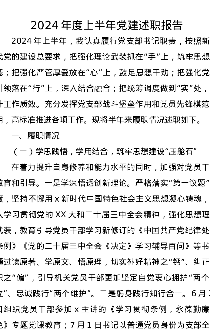 2024年度上半年党建述职报告