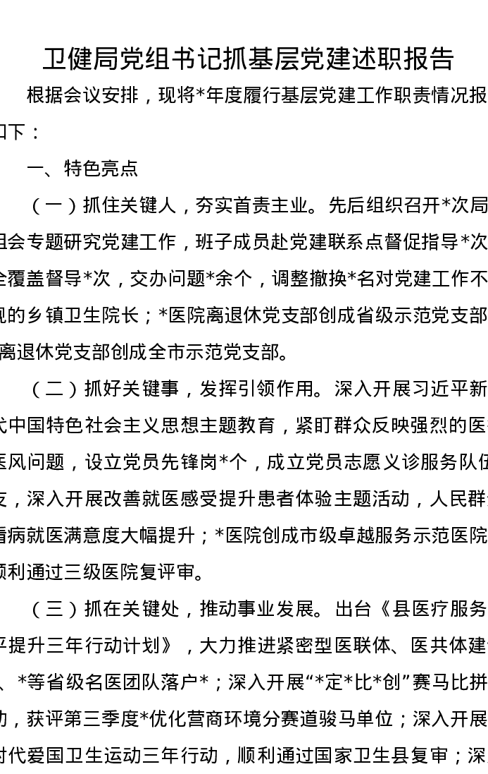 卫健局党组书记抓基层党建述职报告