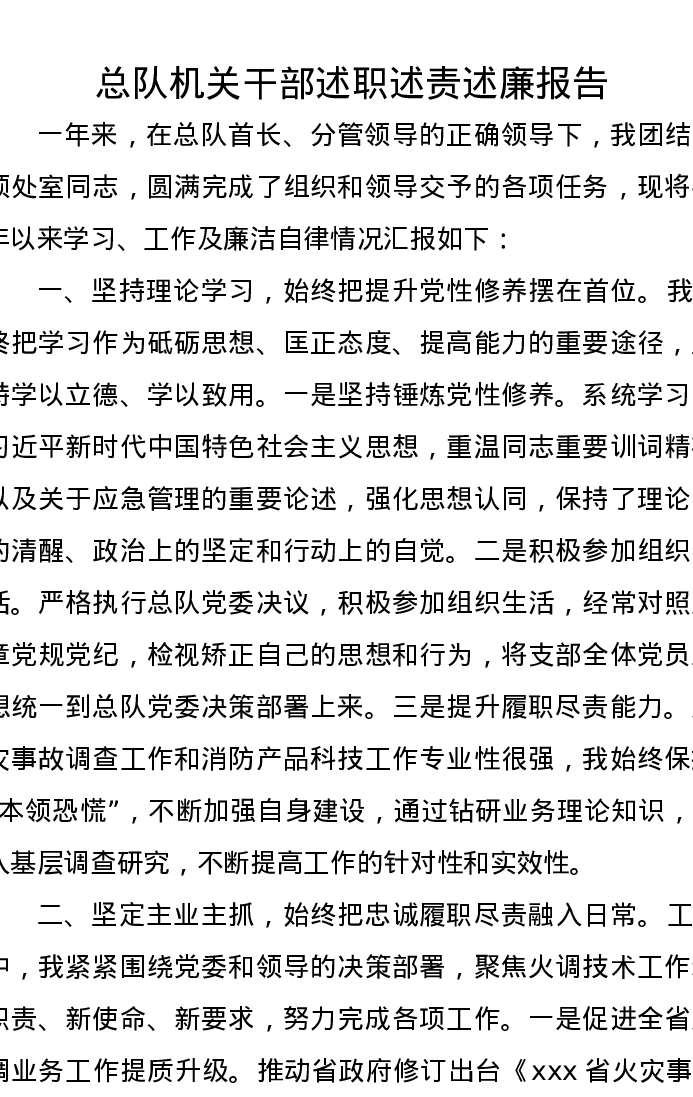 总队机关干部述职述责述廉报告