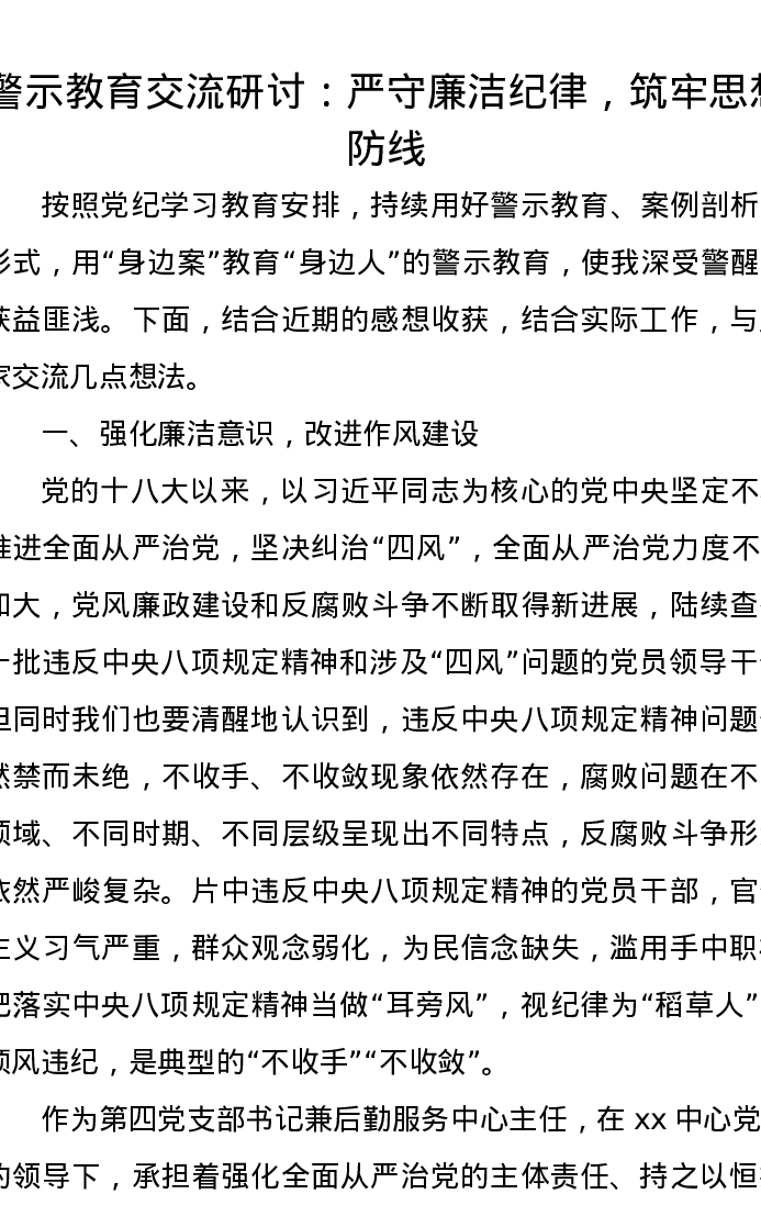 警示教育交流研讨发言:严守廉洁纪律,筑牢思想防线