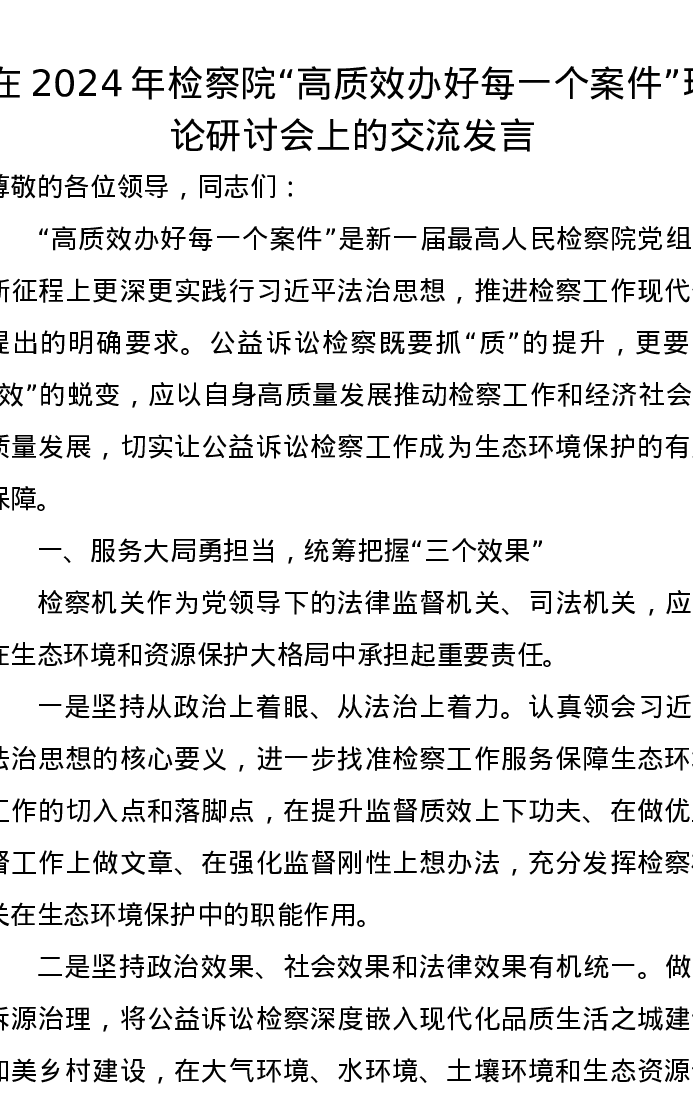 在2024年检察院“高质效办好每一个案件”理论研讨会上的交流发言