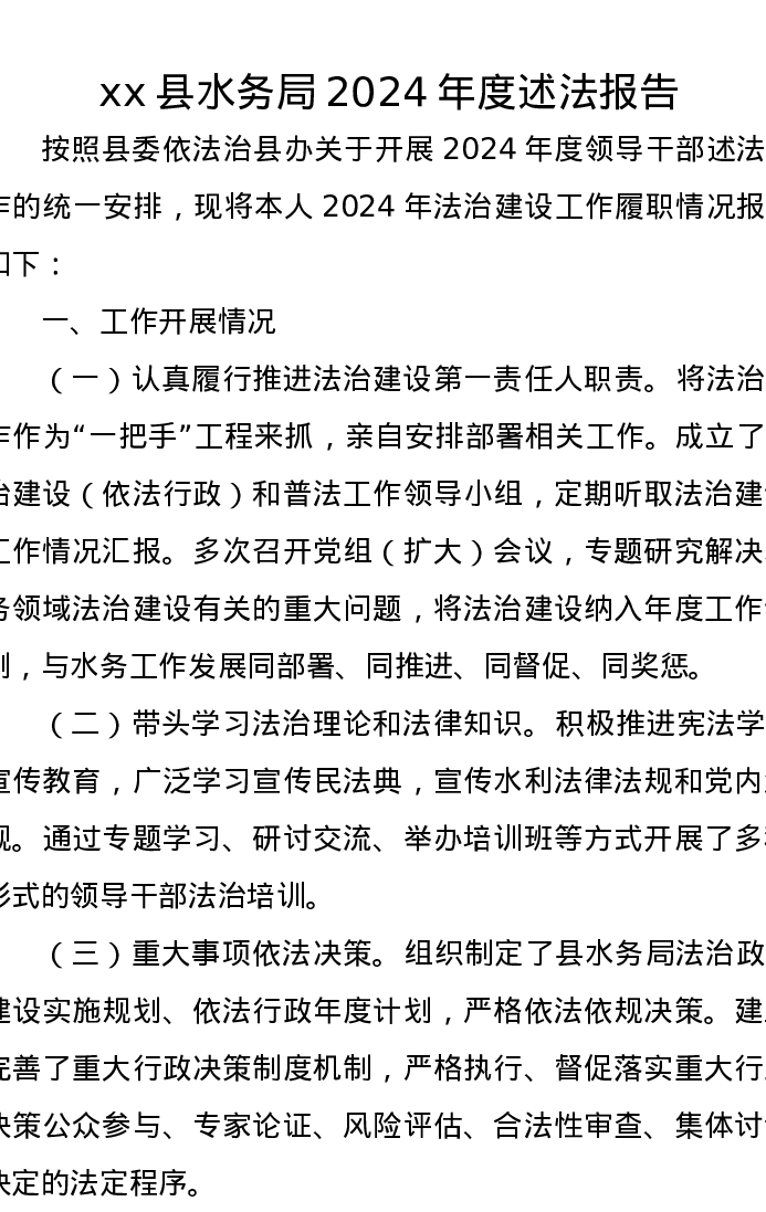 xx县水务局2024年度述法报告