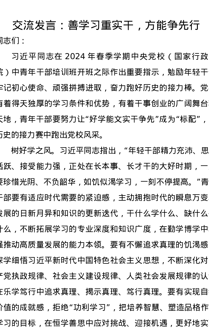 交流发言:善学习重实干,方能争先行