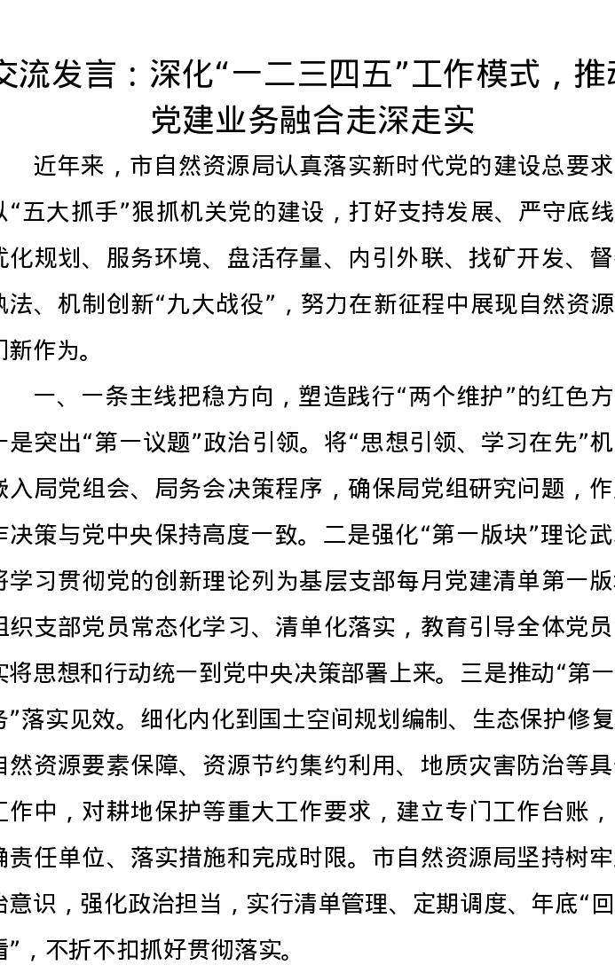 交流发言:深化“一二三四五”工作模式,推动党建业务融合走深走实