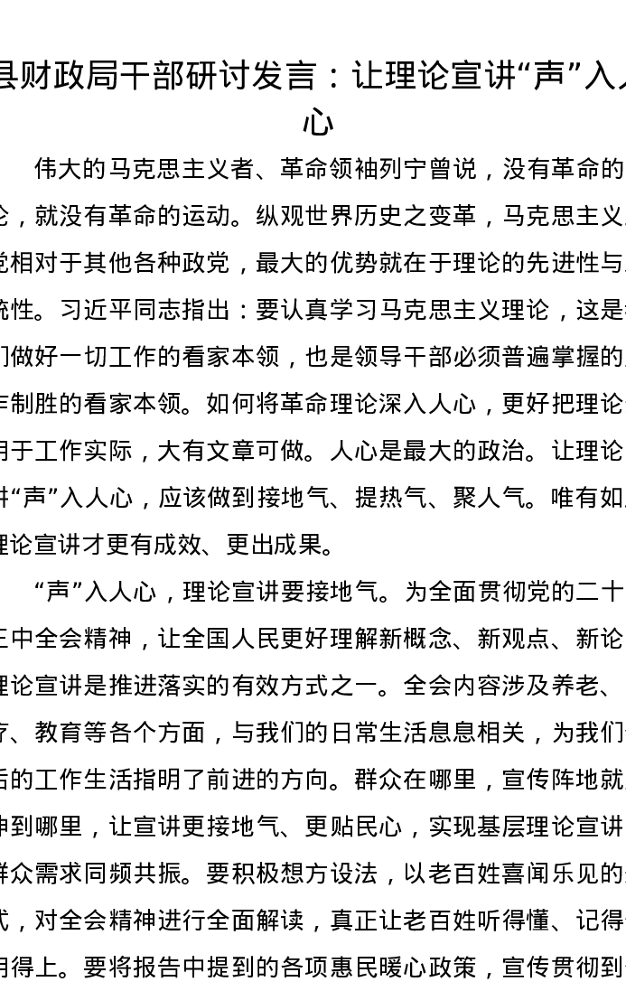 县财政局干部研讨发言:让理论宣讲“声”入人心