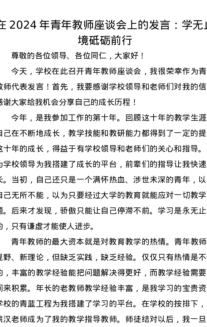 在2024年青年教师座谈会上的发言:学无止境砥砺前行