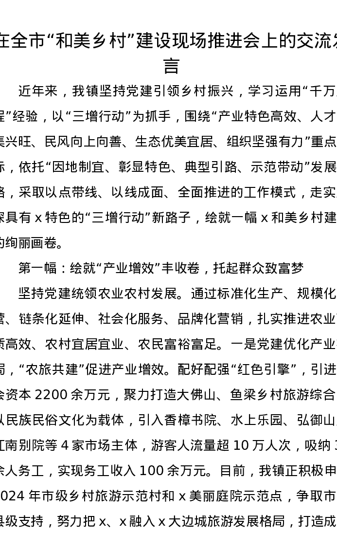 在全市“和美乡村”建设现场推进会上的交流发言