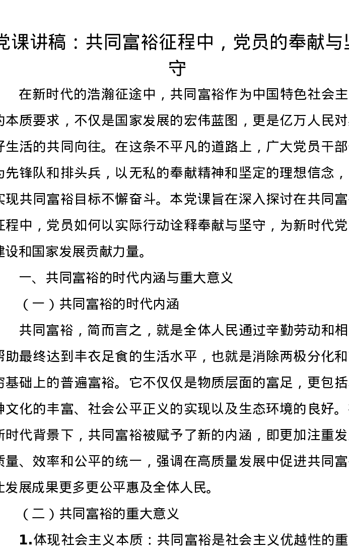 党课讲稿:共同富裕征程中,党员的奉献与坚守