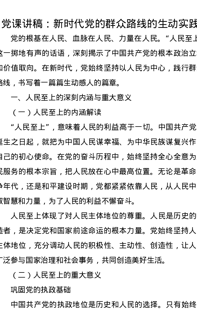 党课讲稿:新时代党的群众路线的生动实践