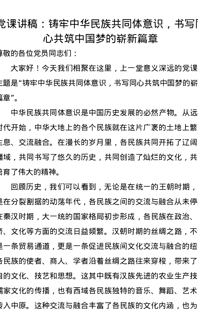 党课讲稿:铸牢中华民族共同体意识,书写同心共筑中国梦的崭新篇章
