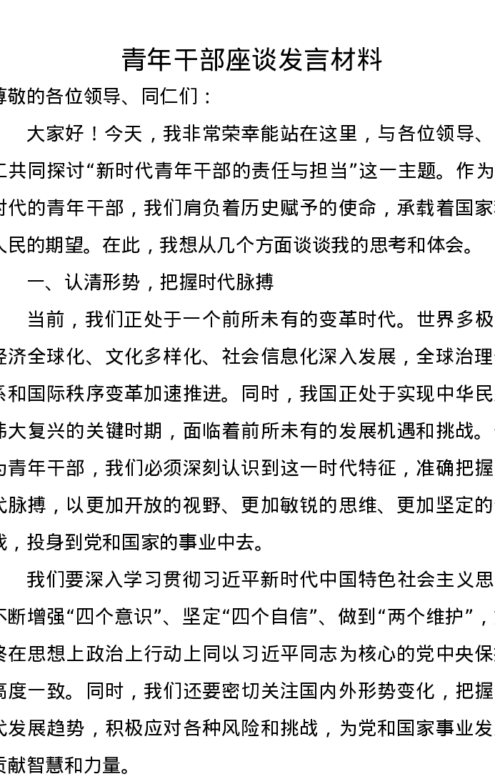 青年干部座谈发言材料