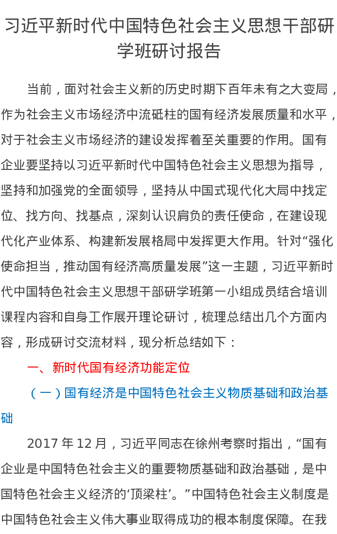 习近平新时代中国特色社会主义思想干部研学班研讨报告