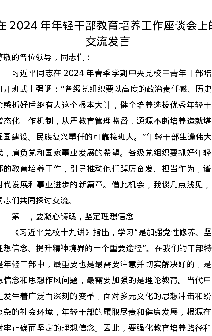 在2024年年轻干部教育培养工作座谈会上的交流发言