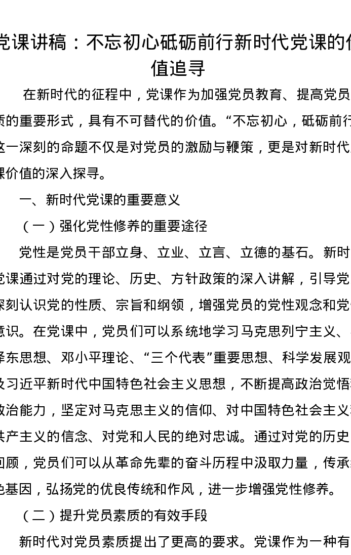 党课讲稿:不忘初心砥砺前行新时代党课的价值追寻
