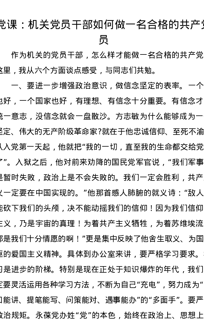 党课讲稿:机关党员干部如何做一名合格的共产党员