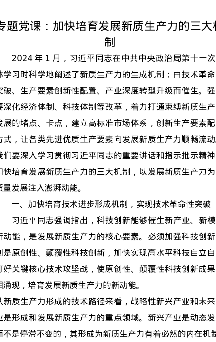 党课讲稿:加快培育发展新质生产力的三大机制