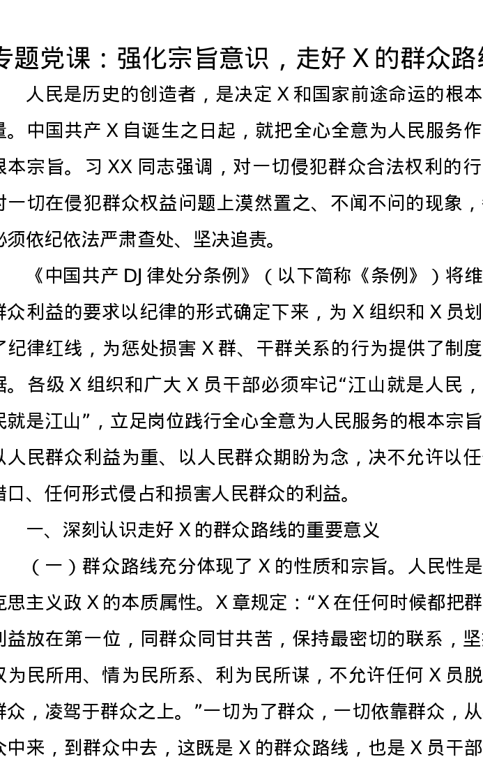 党课讲稿:强化宗旨意识,走好X的群众路线