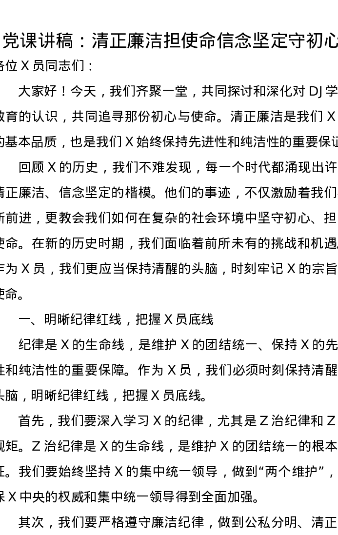 党课讲稿:清正廉洁担使命信念坚定守初心