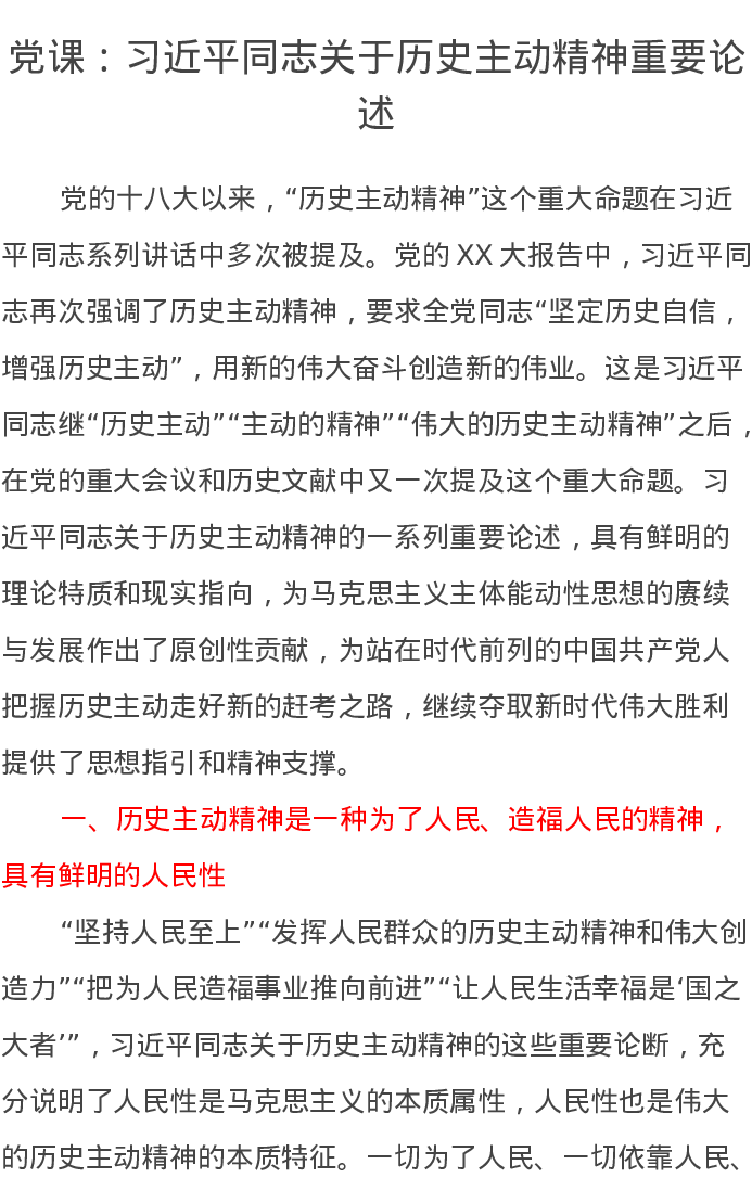 党课讲稿:习近平总书记关于历史主动精神重要论述