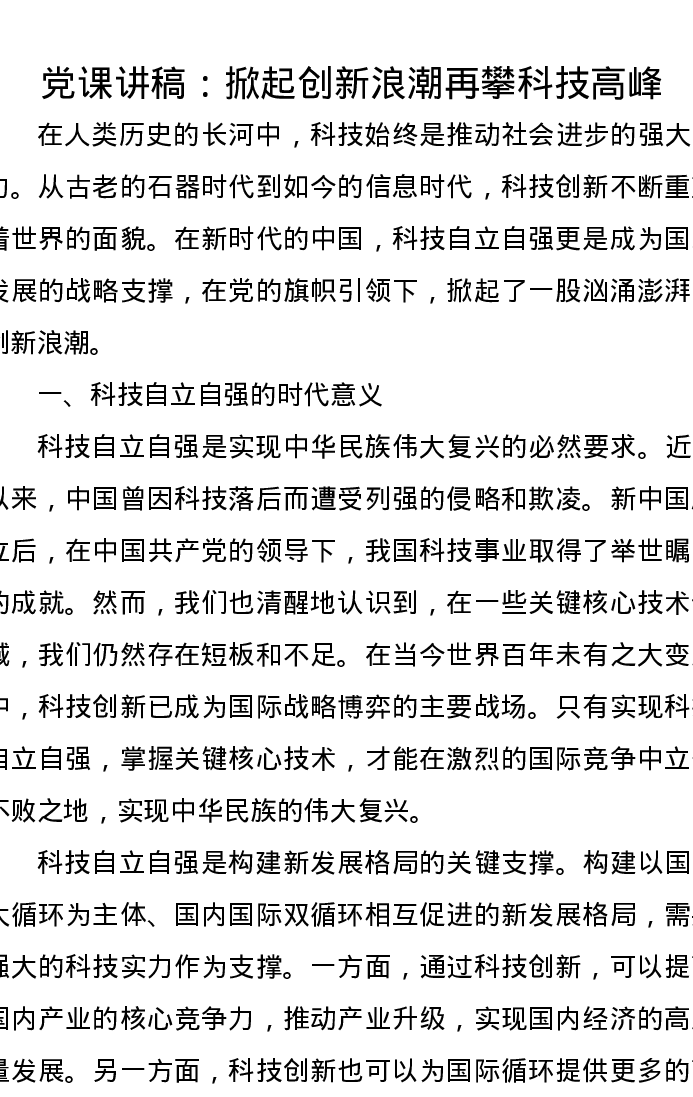 党课讲稿:掀起创新浪潮再攀科技高峰