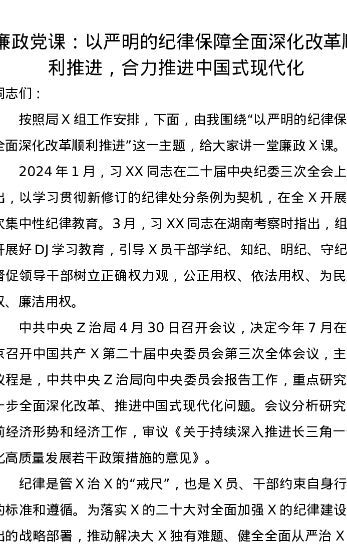 党课讲稿:以严明的纪律保障全面深化改革顺利推进,合力推进中国式现代化
