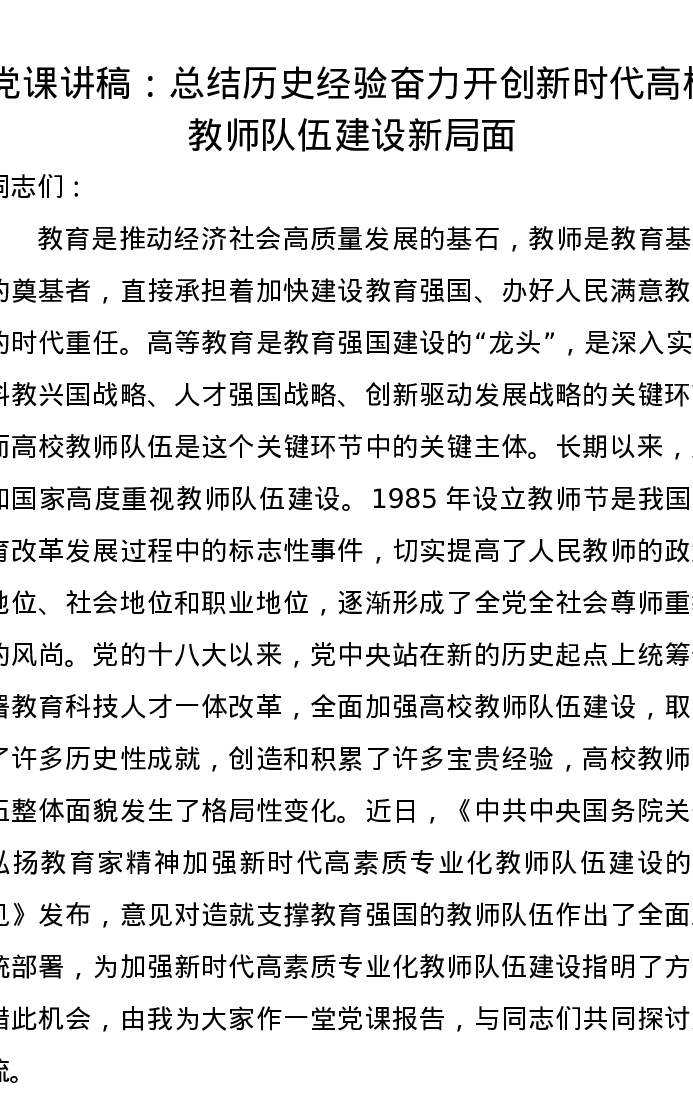党课讲稿:总结历史经验奋力开创新时代高校教师队伍建设新局面
