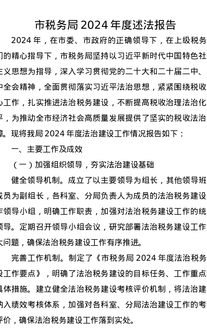 市税务局2024年度述法报告