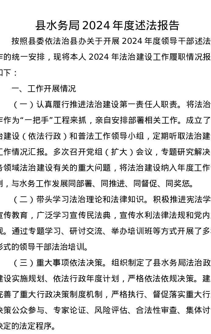 县水务局2024年度述法报告